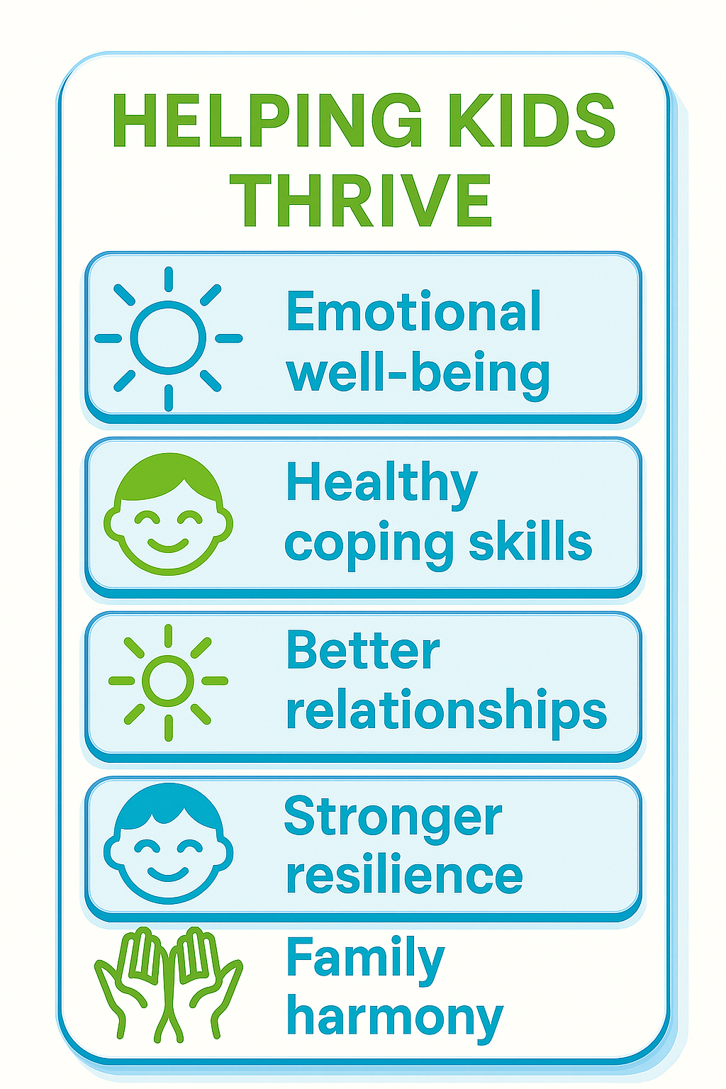 Our child counselors use evidence-based and trauma-informed methods to create a safe, trusting environment where children can heal and grow. Approaches may include play therapy, cognitive-behavioral strategies, parent collaboration, and creative expression techniques.
